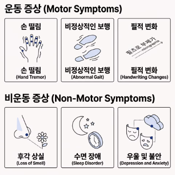 파킨슨병의 증상은 크게 '운동 증상'과 '비운동 증상'으로 나뉩니다. 놀랍게도 운동 장애가 나타나기 수년 전부터 비운동 증상이 먼저 시작되기도 합니다.